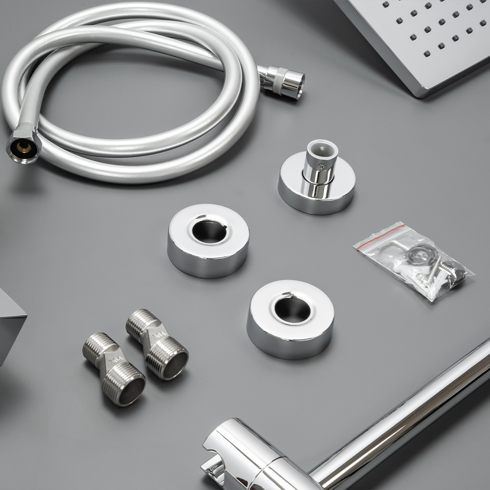смеситель; эксцентрики; душевая стойка; верхний душ; ручной душ; душевой шланг; инструкция.